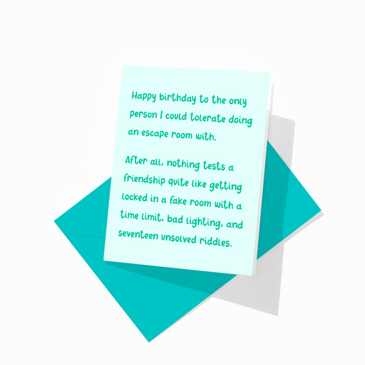 Funny birthday card with witty best friend humor message on front, blank inside.